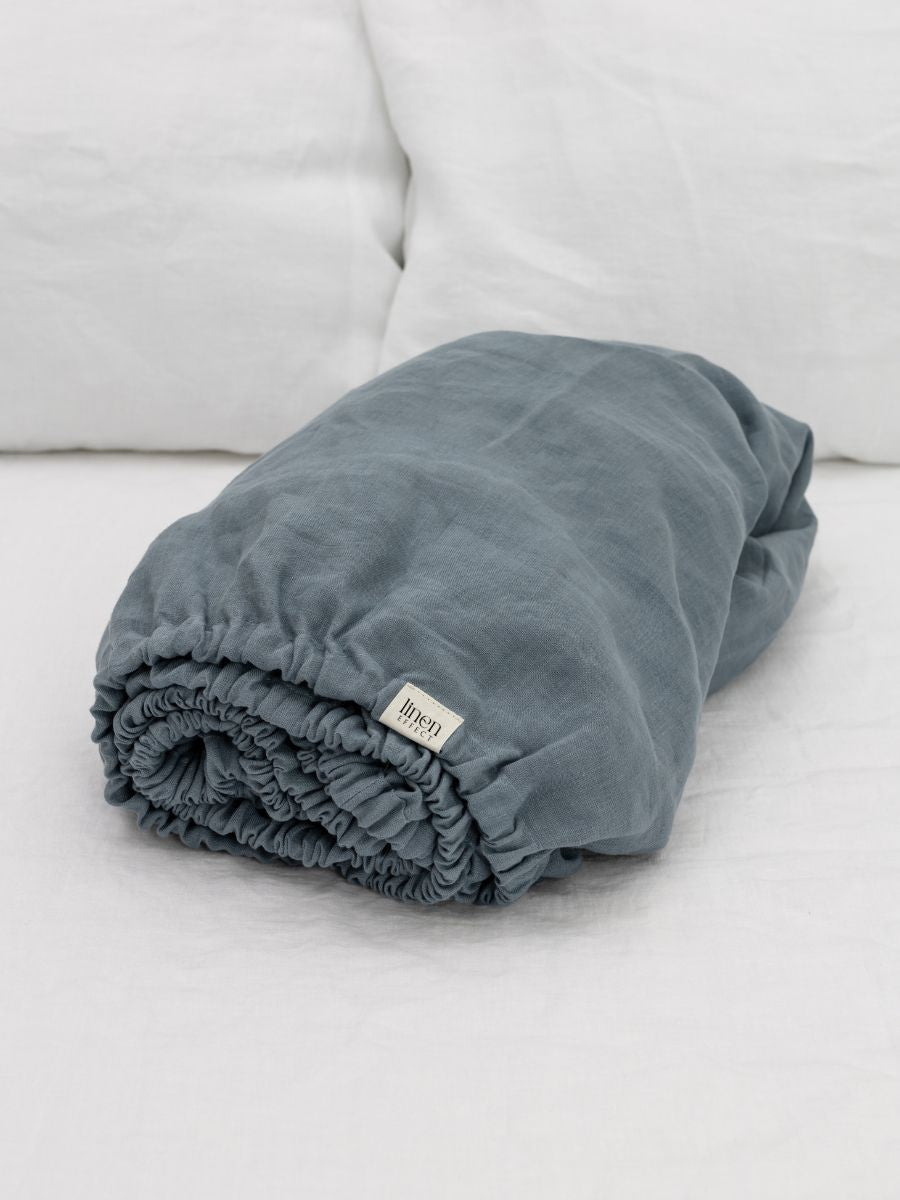 Baltic Blue 100% Flax Linen Baby Fitted Sheets
