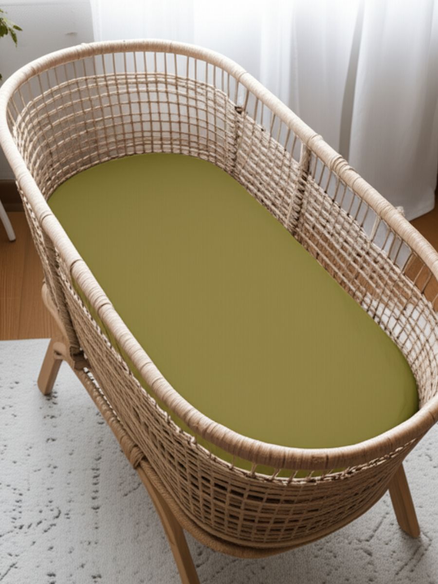Olive Green 100% Flax Linen Baby Fitted Sheets