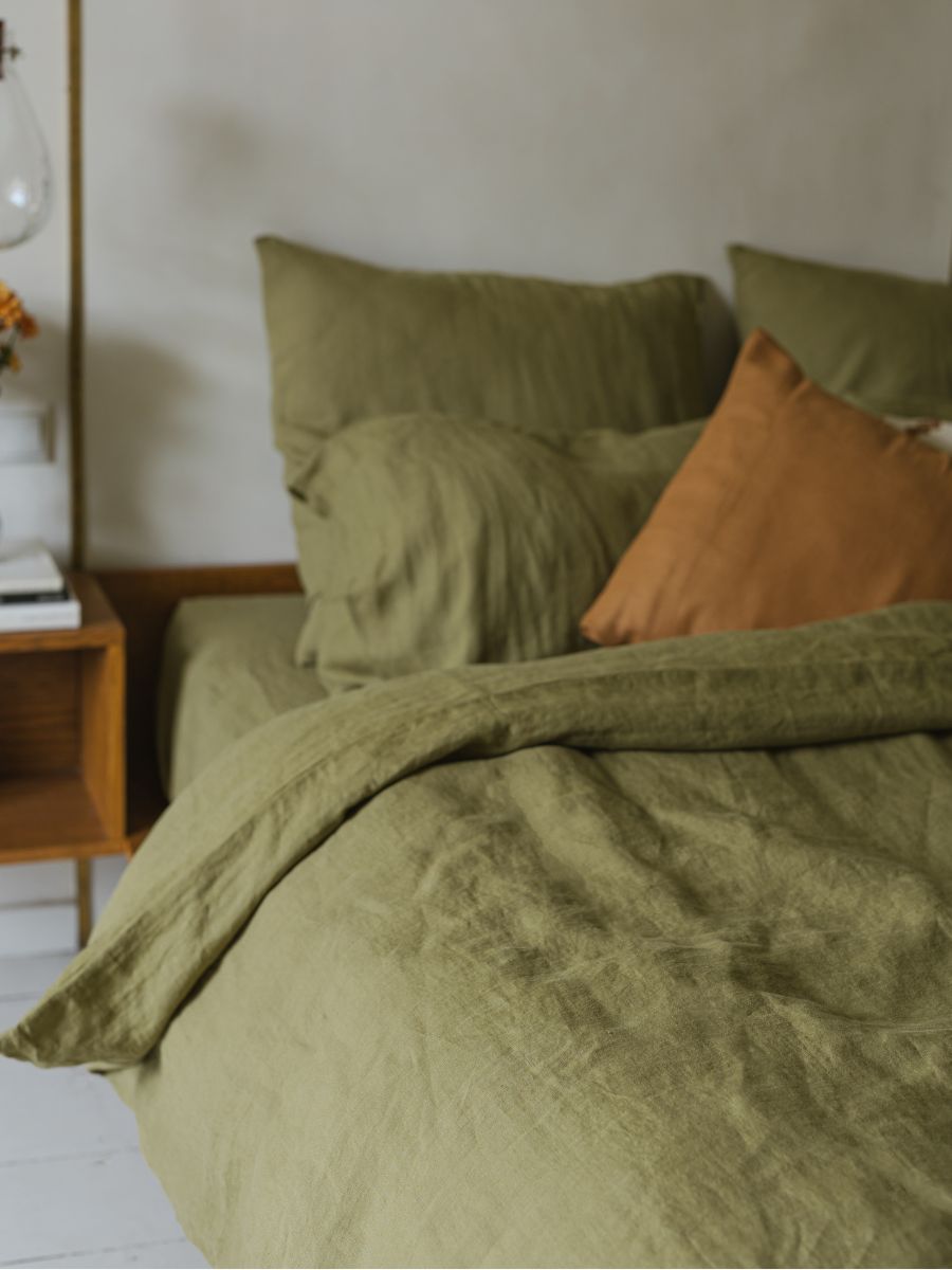 Olive Green 100% Flax Linen Duvet Cover Sets