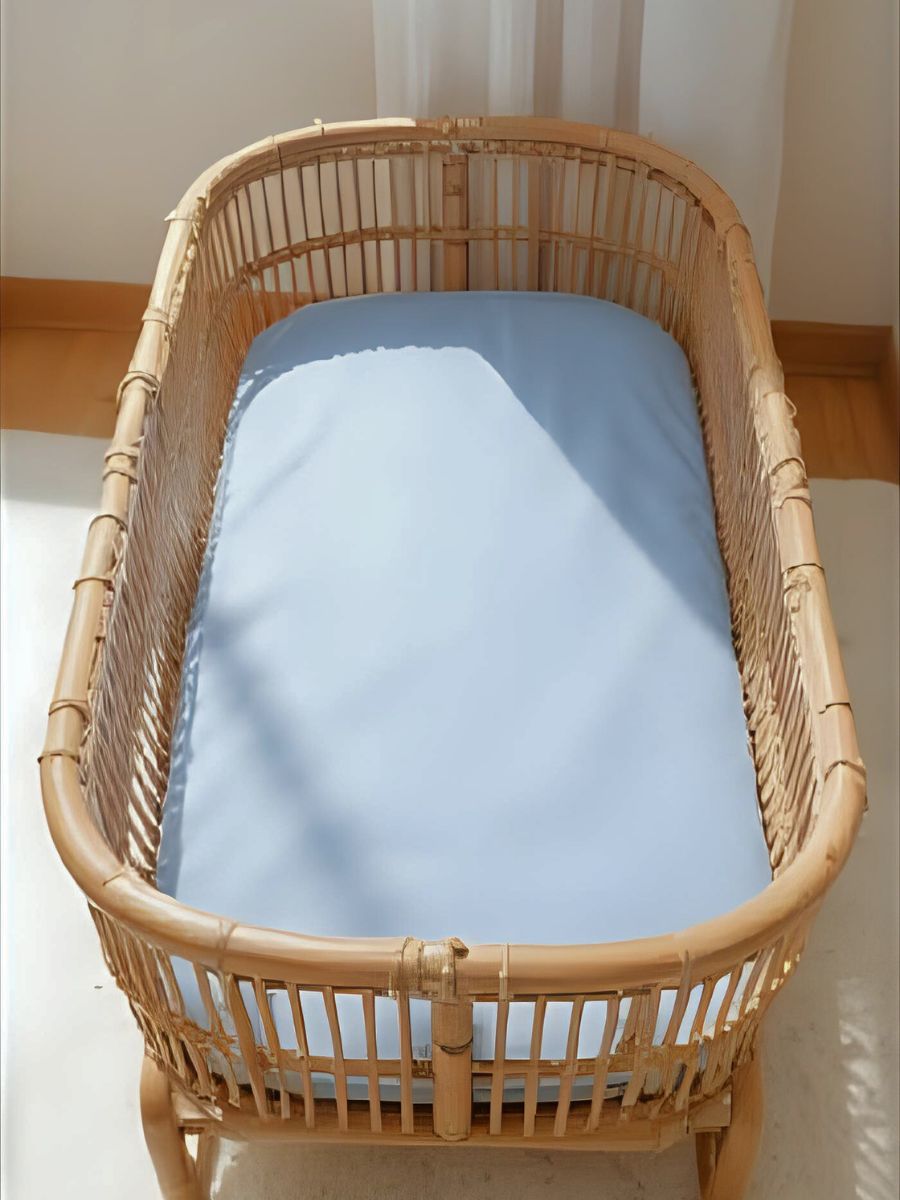 Sky Blue 100% Flax Linen Baby Fitted Sheets