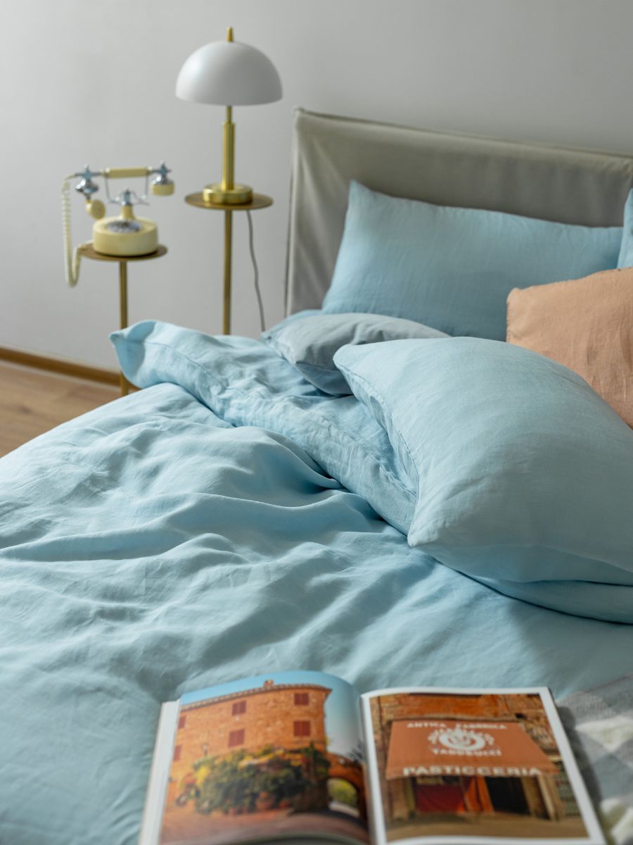 Sky Blue 100% Flax Linen Duvet Covers